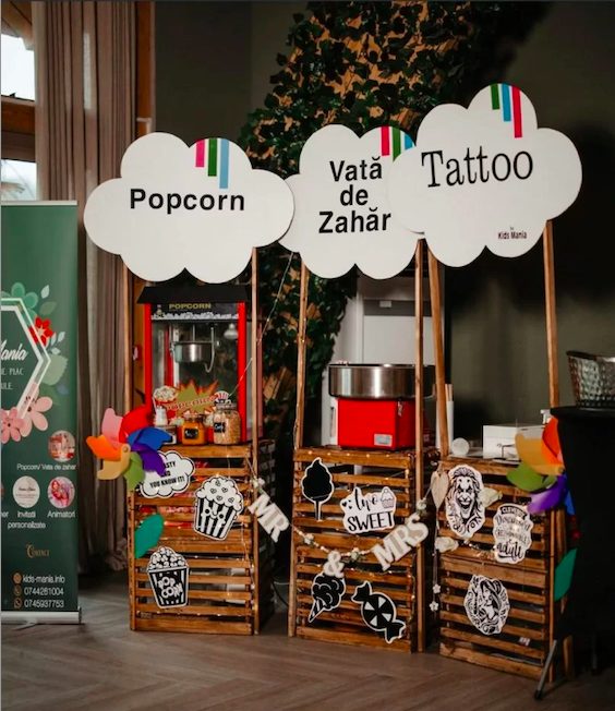 Vata de zahar Popcorn tatuaje temporare la petreceri pentru copii in Iasi
